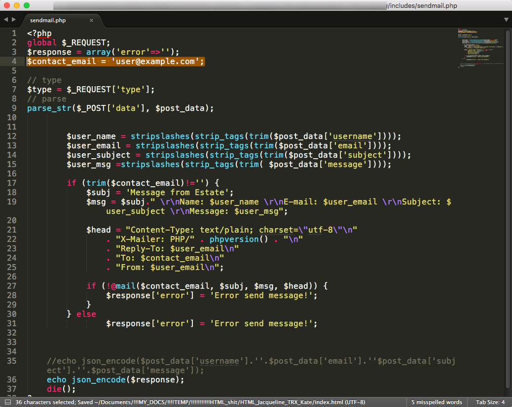 $contact_email = 'user@example.com';