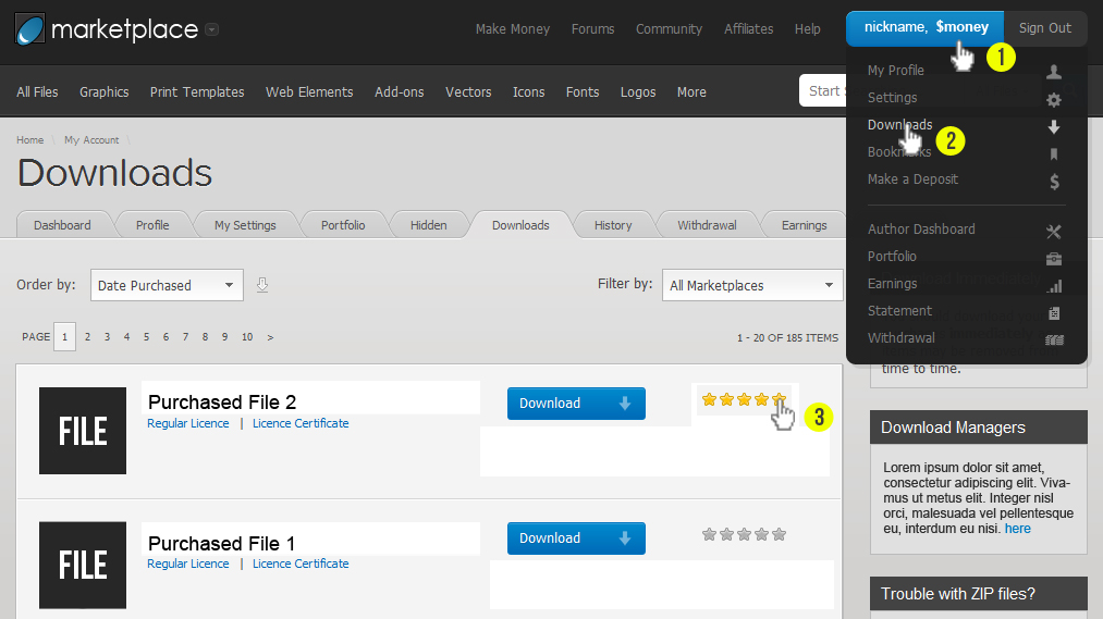 To be able to request a technical support assistance, you need to have a valid purchase code. To get the code, please navigate to your ThemeForest "Download" page and click on the template download link.