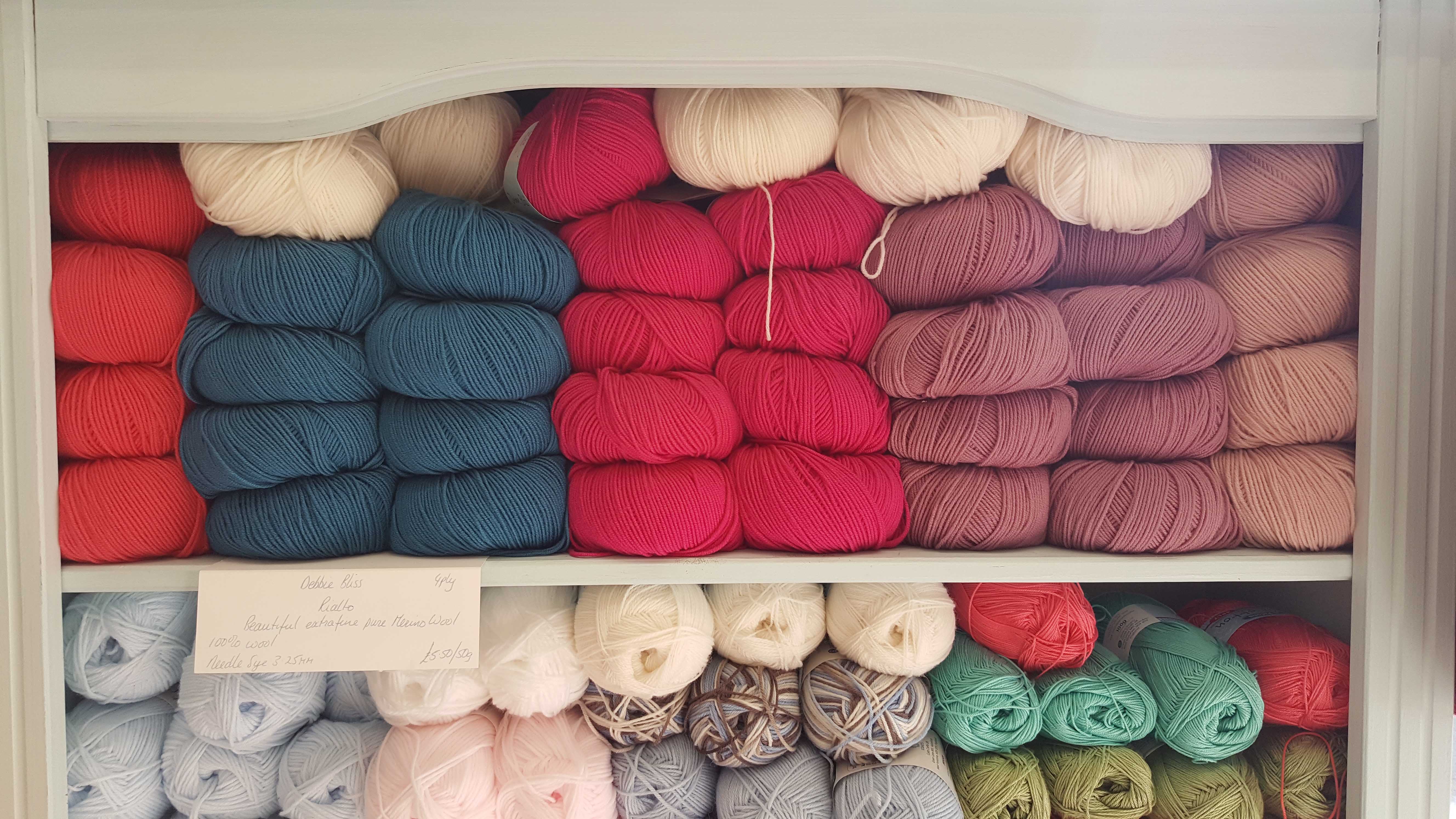 We now stock a range of yarns from Bergere de France, Debbie Bliss, Sirdar, Adriafil, DY Baby Joy, Erika Knight and more. We also stock Knit Pro Needles in a range of colours and sizes, Zing, Trendz and Symphonie and Waves Crochet Hooks, all of which are beautiful and hopefully will inspire you to create some wonderful projects. We stock a good range of haberdashery, Gutermann threads, cotton fabrics, loads of ribbons, zips, buttons, kits, knitting bags and sewing baskets. We do Coffee Mornings, Open Evenings and Children's Sewing Workshops. Come and browse.