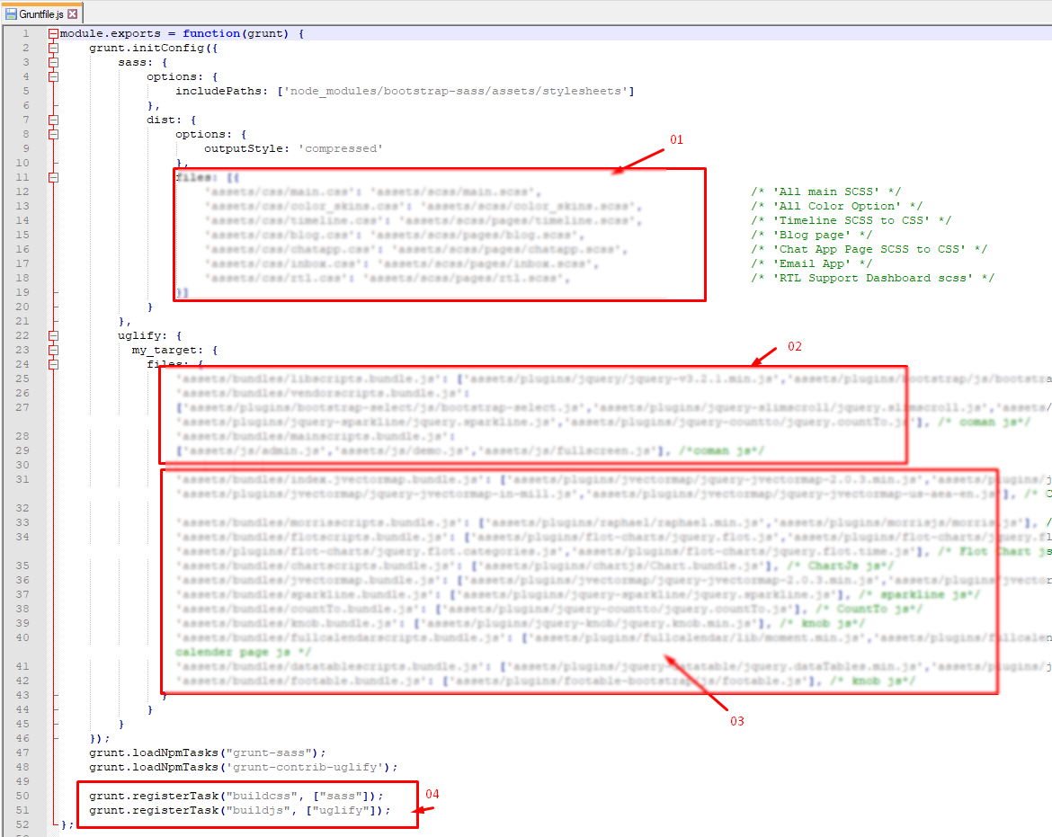 Note: However, any SASS code you write must be able compile via Grunt as well.It will generate pre-compiled javascript templates. Reads all the *.html files from `assets/js/filename` and outputs `assets/js/filename.templates.js`. Template.js will contains code of UI design and will be change each time you build solution through above command.