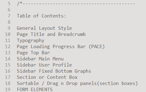 main.css is the main CSS file located in assets/css/ folder of the package. Whole CSS file is well indexed with topic and its related code.