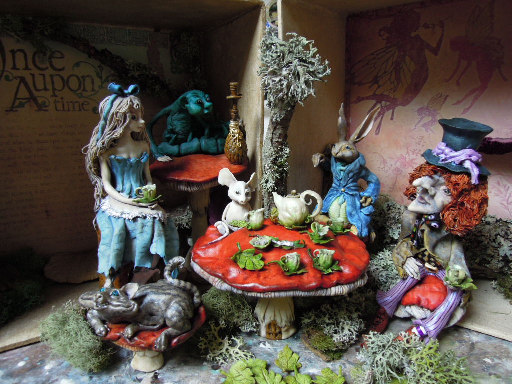 Karen has developed her expertise over the past 37 years in hand sculpting OOAK pieces in the realm of her Magical Fantasy Imaginations. Using mixed media and Fine English Porcelain fired in Kilns to Stoneware temperatures.