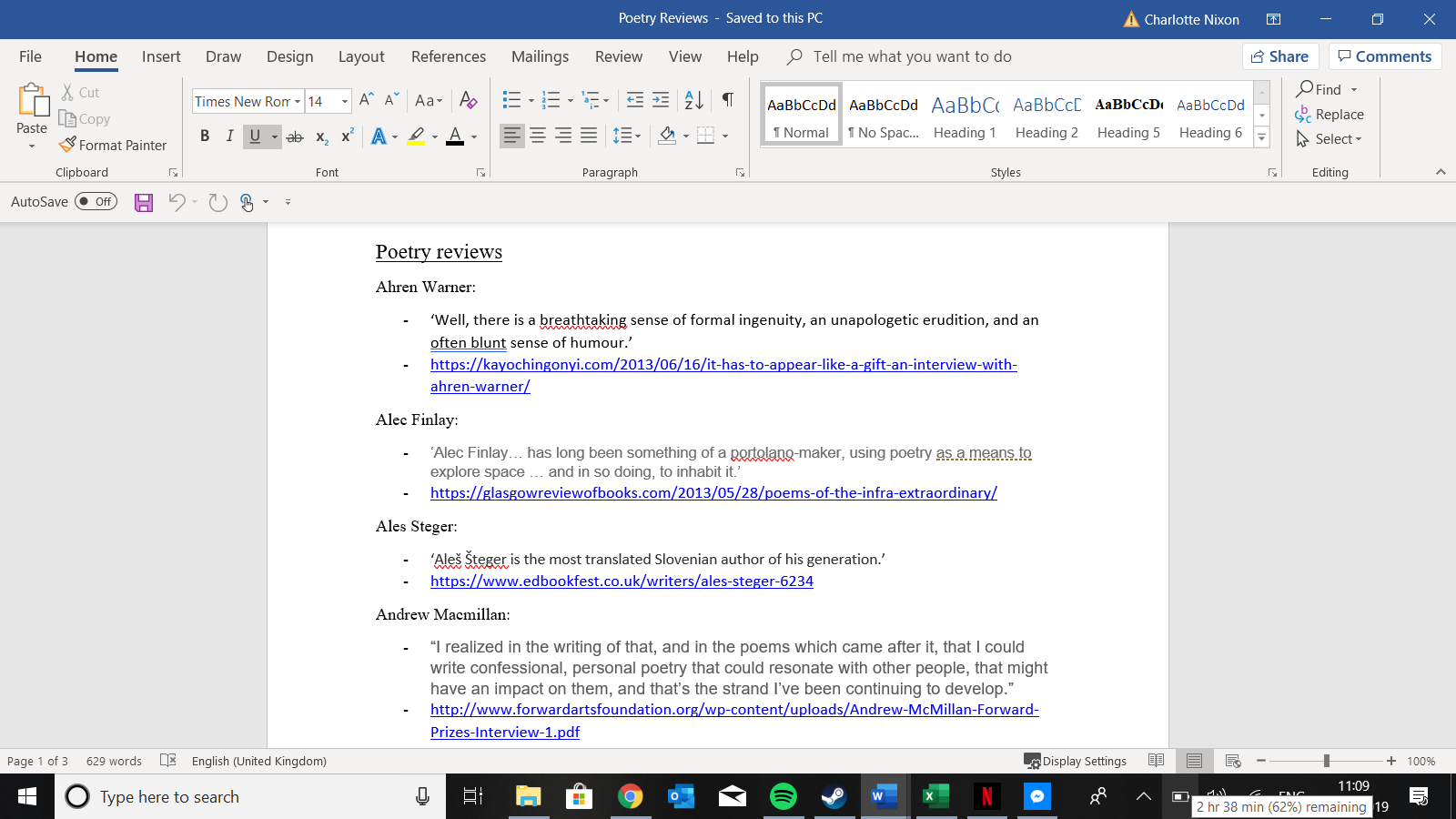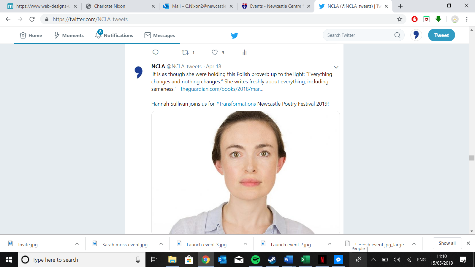 I began working that day and started making my way down the long list of participants, finding out what people had said about them and their work. This was very difficult for some as they were new poets who had had little work published or maybe weren't as well known. Also some reviews were really awful and it wouldn't have worked to put these reviews on twitter in order to encourage people to come to their events!
