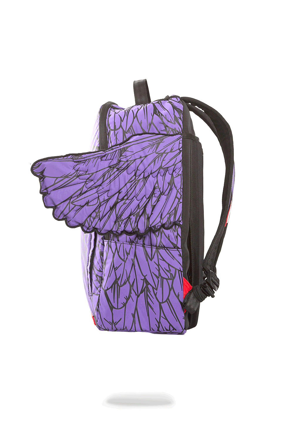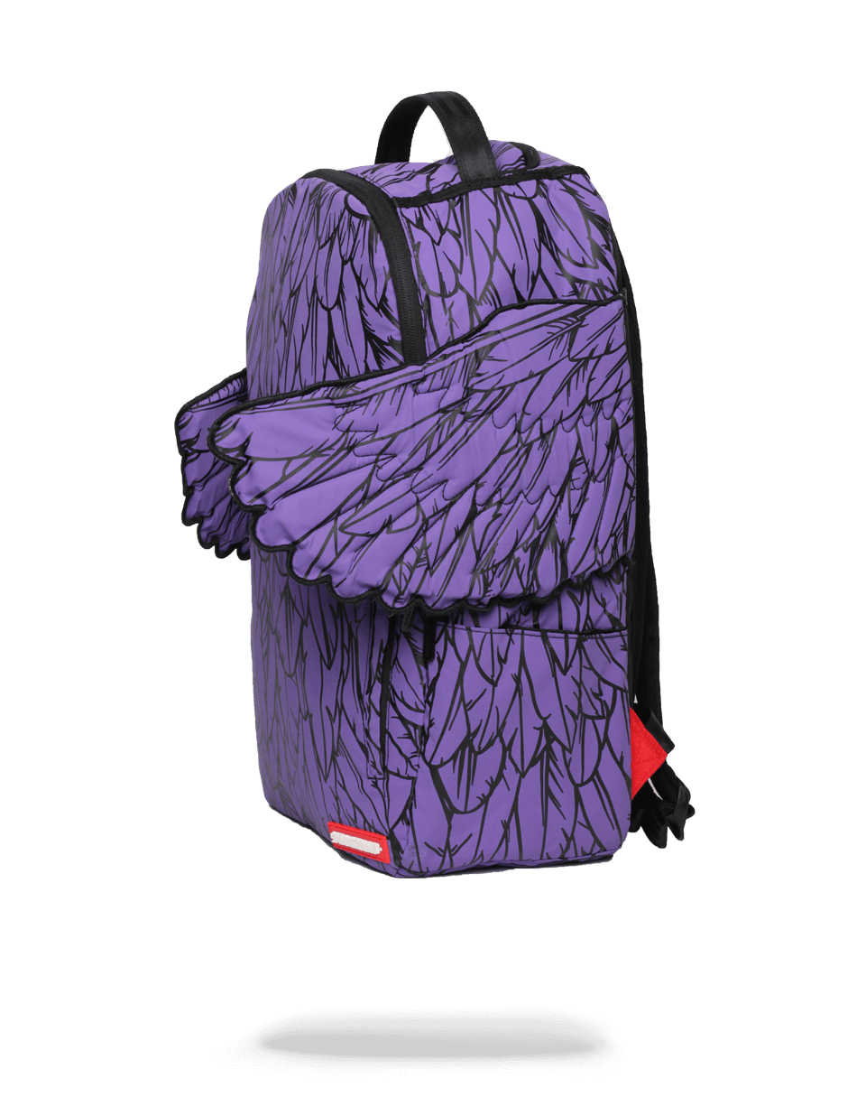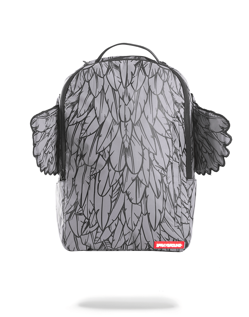 The Wings from Sprayground is a reflective backpack. Features a quick-slip back compartment, side zipper pockets, a velour compartment for sunglasses, a zippered stash pocket, an ergonomic mesh back padding and nylon zippers with metal hardware. • Durable reflective 900D water-resistant fabric • Separate laptop compartment • Moulded wings crafted from memory foam.