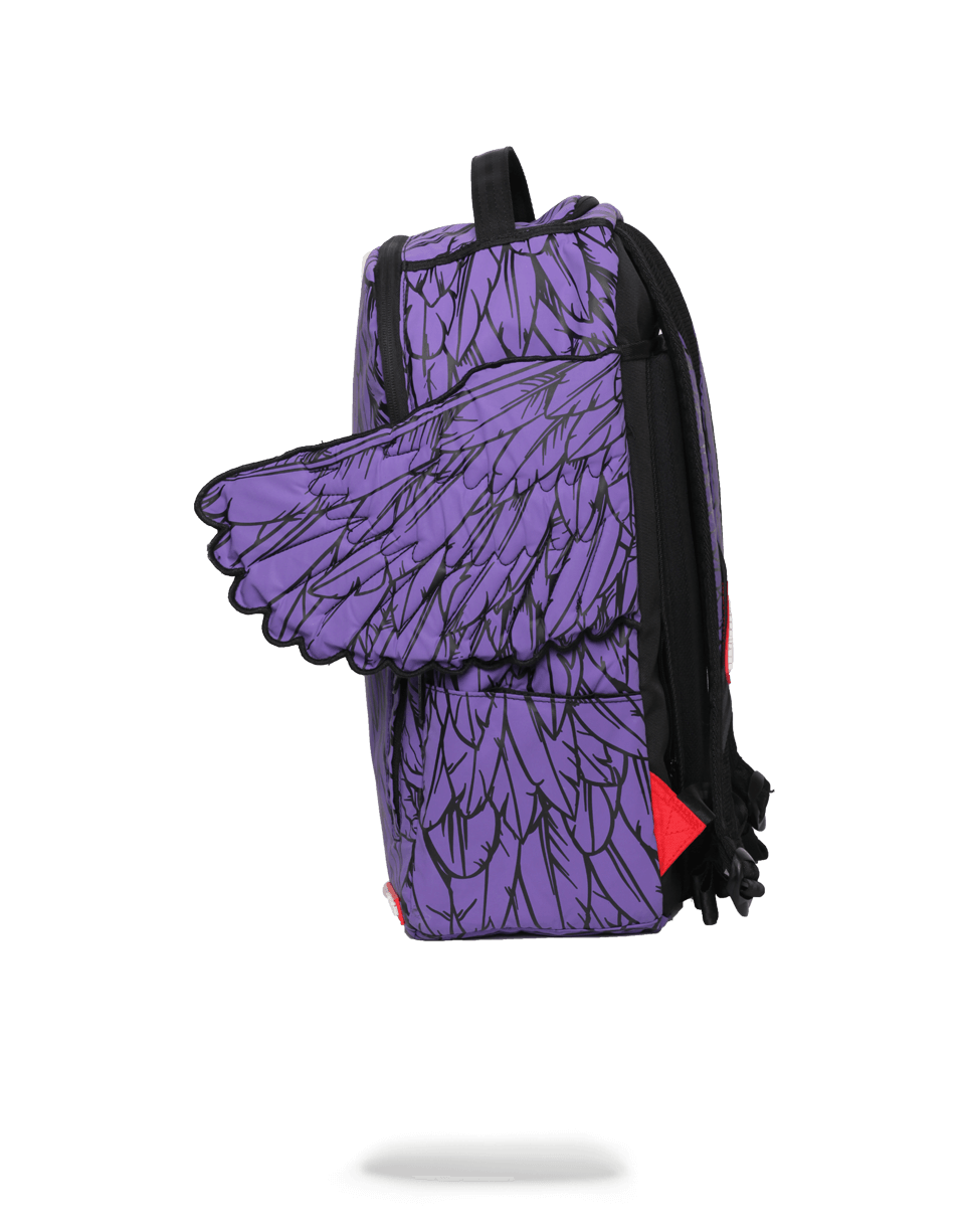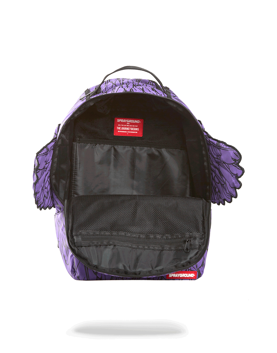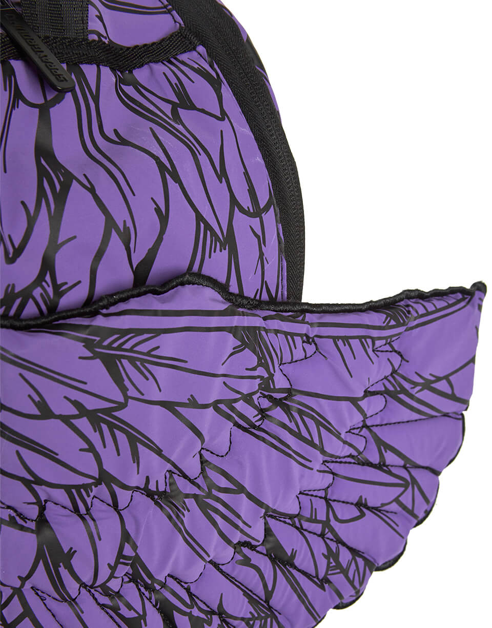 The Wings from Sprayground is a reflective backpack. Features a quick-slip back compartment, side zipper pockets, a velour compartment for sunglasses, a zippered stash pocket, an ergonomic mesh back padding and nylon zippers with metal hardware. • Durable reflective 900D water-resistant fabric • Separate laptop compartment • Moulded wings crafted from memory foam.