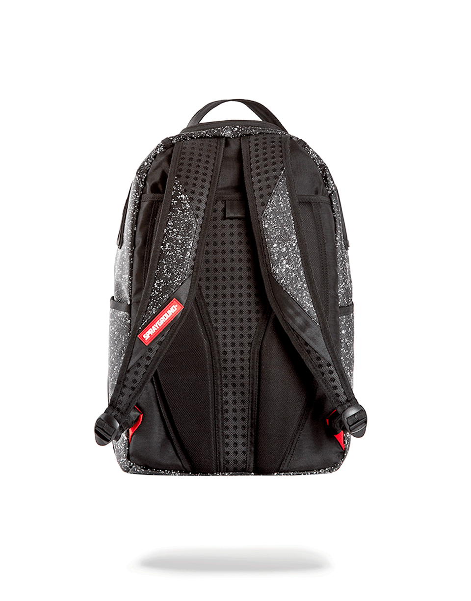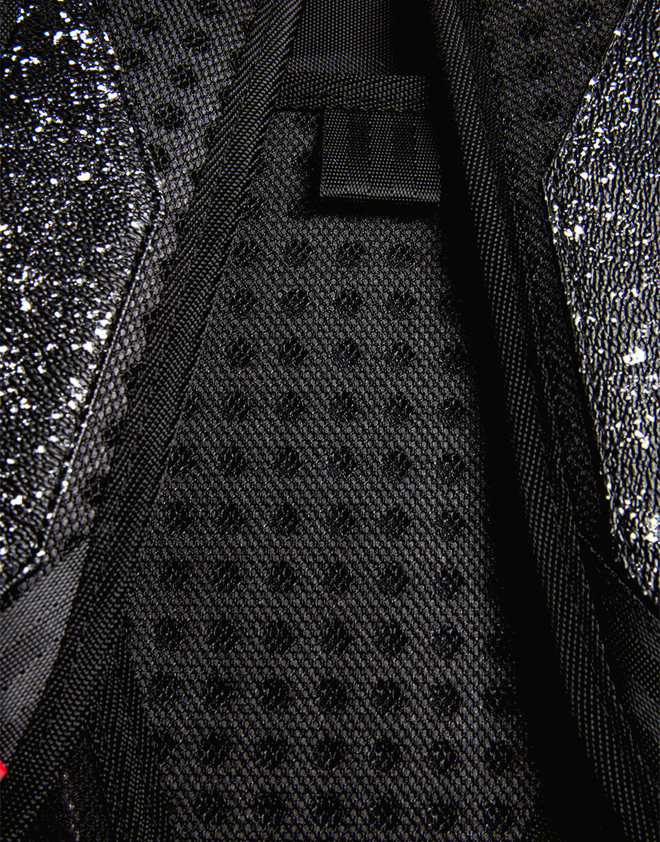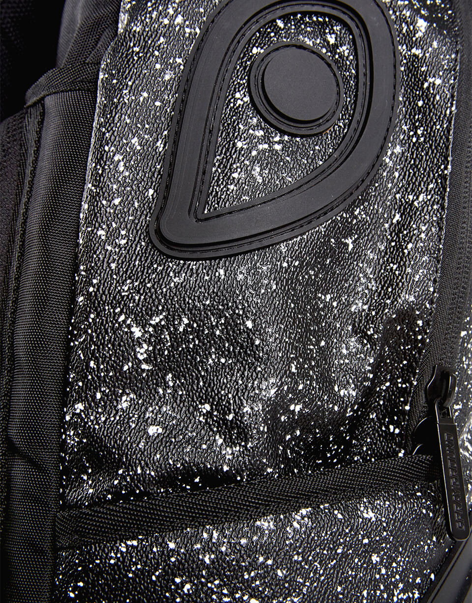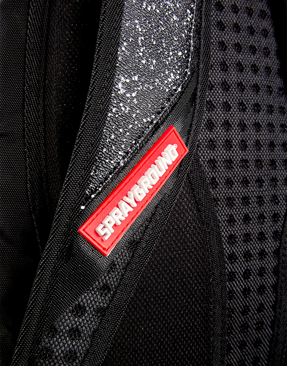 This is the Party Shark Backpack by Sprayground. This iconic shark mouth print appears in black rubber with a black starry night background print. The bag was designed with black edges and black shark eyes on the side of the bag. Featuring individual laptop and sunglass pockets with ergonomic straps big enough to hold a days worth of gear. All bags are limited edition and never produced again so get yours before they are gone forever!