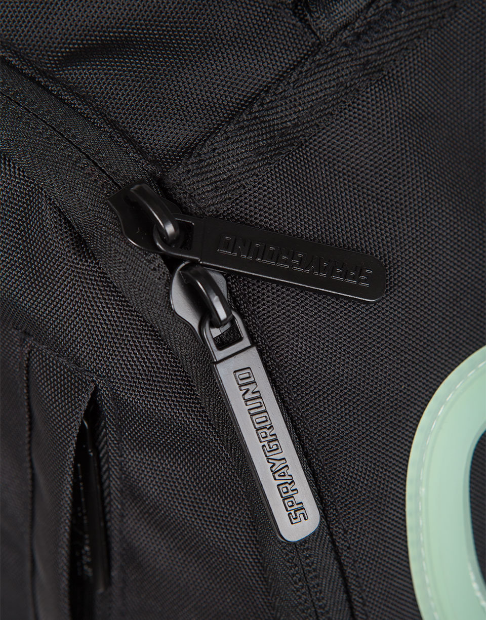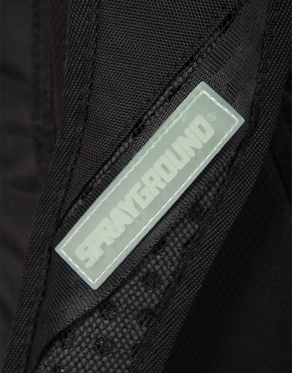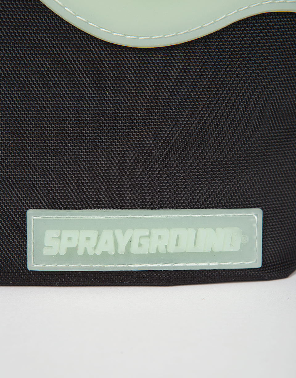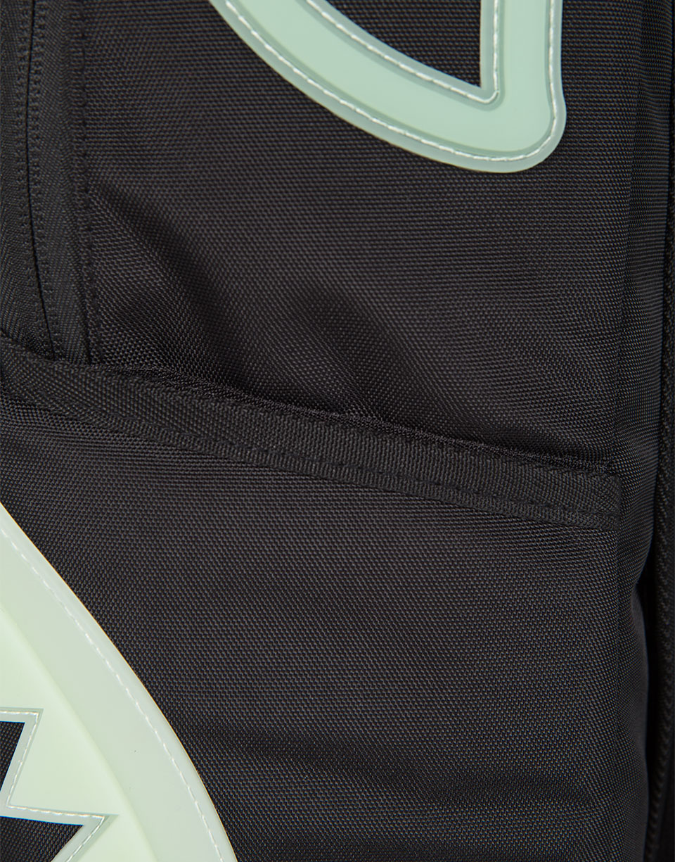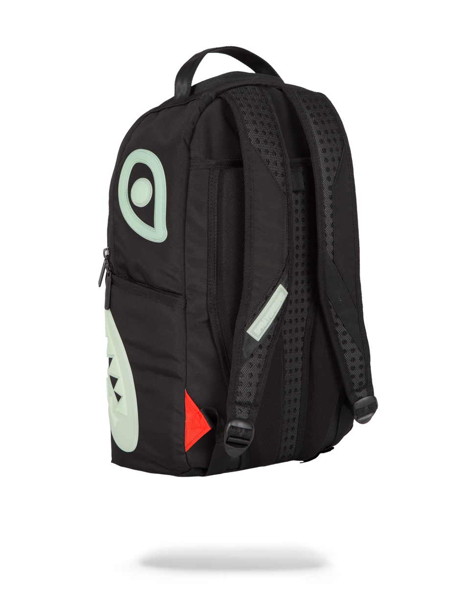 This is the Glow in the Dark Shark Backpack by Sprayground. This iconic shark mouth print is back in a glow in the dark version. Designed with a black background and glow in the dark mouth and eyes, this backpack is perfect of any time of day. Featuring individual laptop and sunglass pockets with ergonomic straps big enough to hold a days worth of gear. All bags are Limited edition and never produced again.