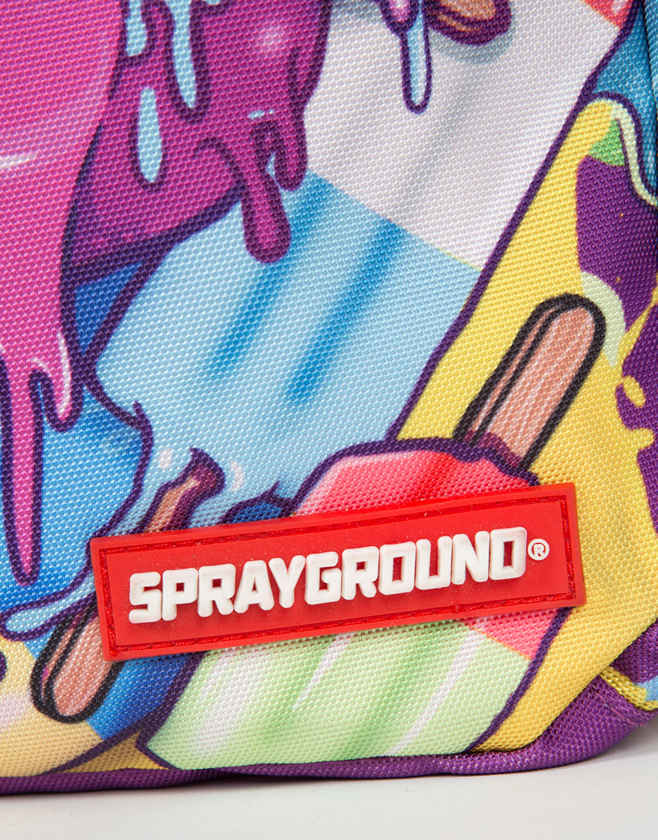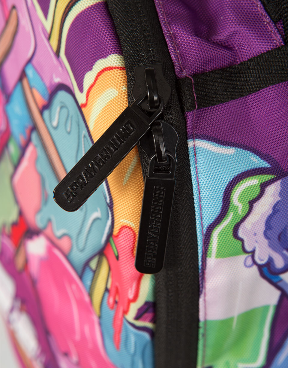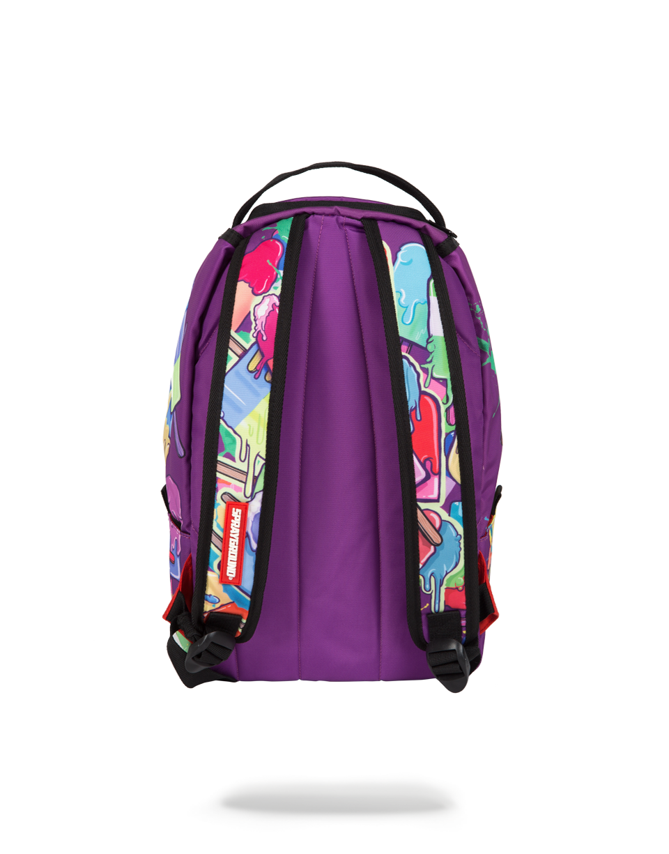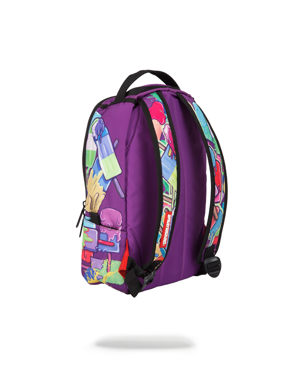 This is the Lil Popsicle Grillz Backpack by Sprayground. This mini backpack features a fun Popsicle print. Popsicles of all different colours incase this backpack, with a mouth on the very front portion of the bag. Featuring individual laptop and sunglass pockets with ergonomic straps big enough to hold a days worth of gear. All bags are Limited edition and never produced again.