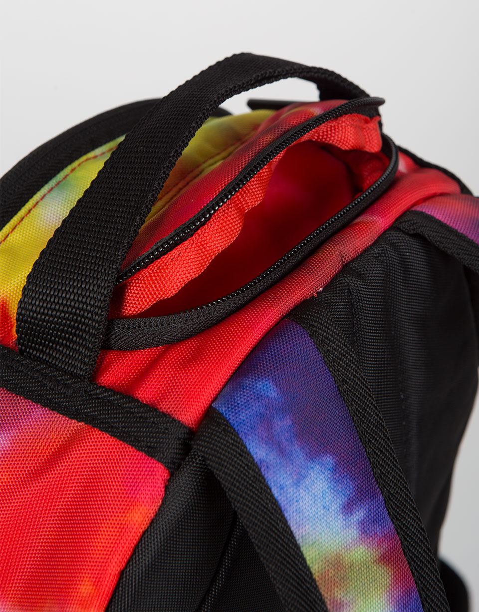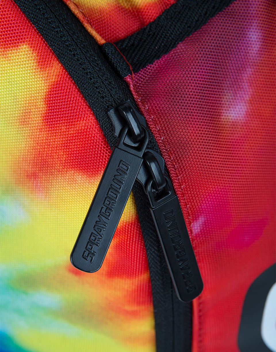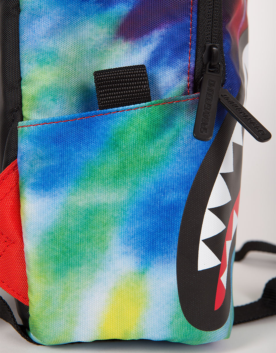 This is the Lil Tie Dye Backpack by Sprayground. This mini backpack features a fun Tie Dyeprint. Patterns of all different colours incase this backpack. Featuring individual laptop and sunglass pockets with ergonomic straps big enough to hold a days worth of gear. All bags are Limited edition and never produced again.