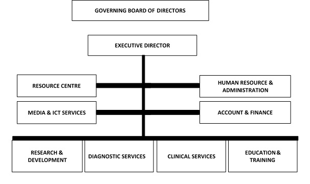 The organisational governance is done solely by the governing board of directors, and the executive officers support the board with technical governance.